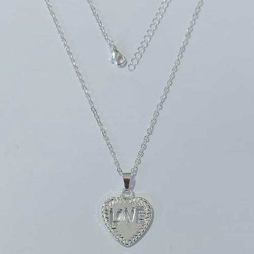 GARGANTILHA FOLHEADA A PRATA COM 50 MILÉSIMOS + VERNIZ DIAMOND - GARGANTILHA CORRENTE CADEADO 45CM CORAÇÃO ESCRITO LOVE VAZADO 17MM -PRA574