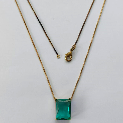 GARGANTILHA NO BRUTO PRONTA PARA O BANHO - GARGANTILHA COM CORRENTE VENEZIANA 45CM E PINGENTE EM ZIRCÔNIA VERDE RETANGULAR 10X14CM - PESO TOTAL 3,4GR - BRU15750