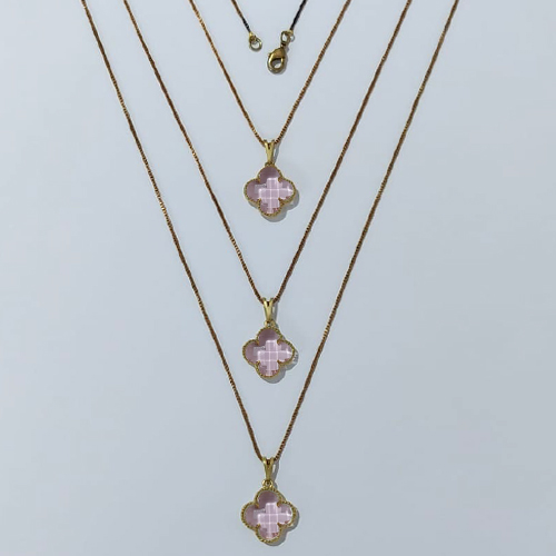 GARGANTILHA NO BRUTO PRONTA PARA O BANHO - KIT COM 3 CORRENTES VENEZIANAS 45CM E PINGENTES TIPO VAN CLEEF VIDRO ROSA 15MM - PESO TOTAL 9GR - BRU24314
