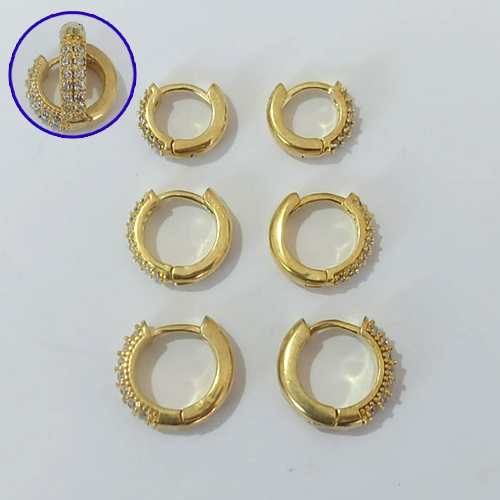 BRINCO NO BRUTO PRONTO PARA O BANHO LATÃO - TRIO DE BRINCO REDONDO 2 FILEIRAS DE MICRO ZIRCÔNIAS - TAMANHOS - 13/12/10MM - PESO TOTAL 5,5GR - BRU30001