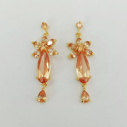 BRINCO FOLHEADO A OURO - BANHADO COM 5 MILÉSIMOS + VERNIZ DIAMOND - BRINCO DE PINO FLOR TODO DE ZIRCÔNIA 37MM - OURO1134