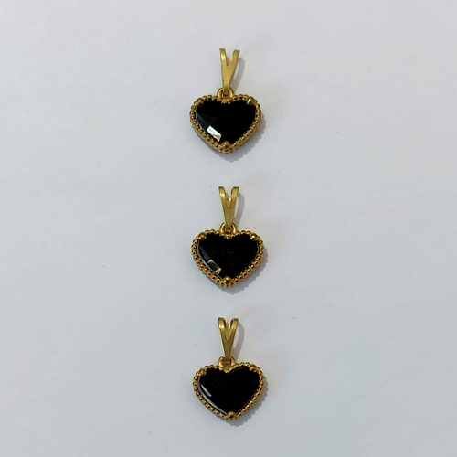 PINGENTE NO BRUTO PRONTO PARA O BANHO - KIT COM 3 PINGENTES PINGENTES CORAÇÃO TIPO VAN CLEEF EM VIDRO PRETO 10MM - PESO TOTAL 2,1GR - BRU24281