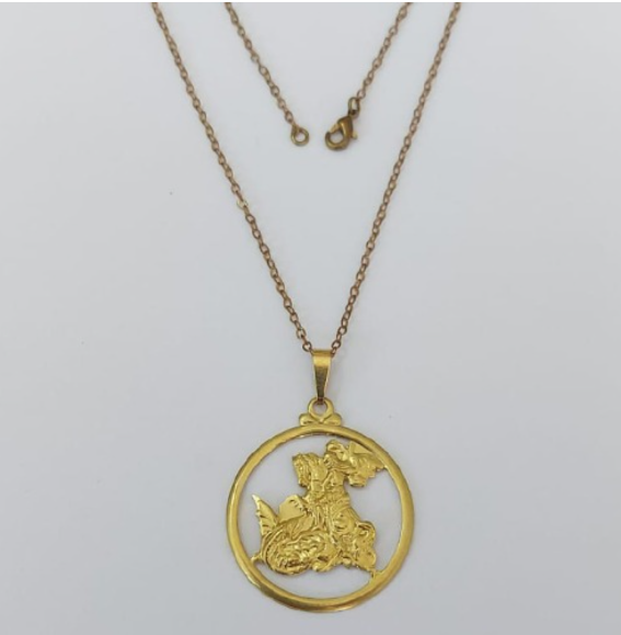 GARGANTILHA NO BRUTO PRONTO PARA O BANHO(534)- COM CORRENTE CADEADO DE 45CM COM FECHO LAGOSTA (Pingente Sao Jorge Vazado 30mm) / PESO 4.8GR - BRU0003509
