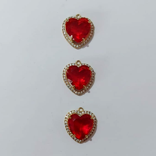 PINGENTE NO BRUTO PRONTO PARA O BANHO - KIT COM 3 PINGENTES COM BASES CORAÇÃO CRAVEJADO EM MICRO ZIRCÔNIAS CRISTAIS E PEDRA EM ZIRCÔNIA VERMELHA 15X15MM - PESO TOTAL 12,6GR - BRU24229