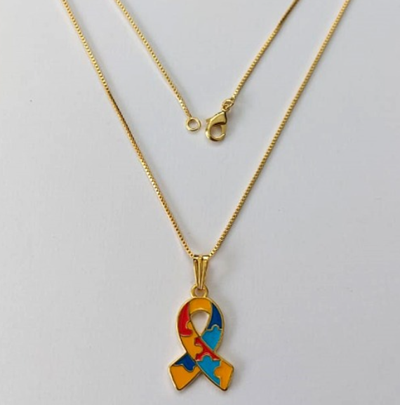GARGANTILHA FOLHEADO A OURO COM CORRENTE VENEZIANA DE 45CM PINGENTE DE AUTISMO OURO000638
