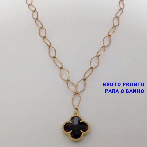 SHOCKER NO BRUTO PRONTO PARA O BANHO(100% LATÃO)CORRENTE DE 40+EXTESNOR TREVO EM VIDRO - COM FECHO LAGOSTA - LARGURA 6,5MM / PESO 5.8GR - BRU25117