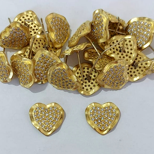 BRINCO NO BRUTO PRONTO PARA O BANHO - BRINCO DE PINO CORAÇÃO CRAVEJADO COM MICROS ZIRCÔNIAS - TAMANHO 13MM - COMPOSIÇÃO: LATÃO / ZIRCÔNIA - PESO 2,4GR - BRU24097