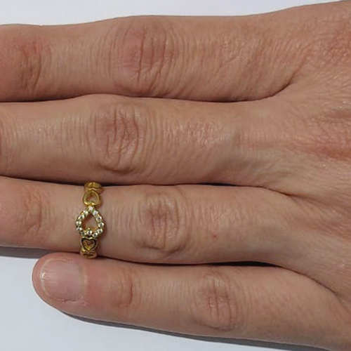 ANEL (FALANGE) NO BRUTO PRONTO PARA O BANHO - CORAÇÕES VAZADO CRAVEJADO COM MICROS ZIRCÔNIAS - PESO MÉDIO: 1,3GR - ANEL000532