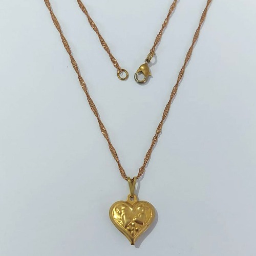 GARGANTILHA NO BRUTO PRONTA PARA O BANHO - (E0347) GARGANTILHA COM CORRENTE SINGAPURA 45CM E PINGENTE CORAÇÃO DUPLO 17MM - PESO: 3,1GR - COMPOSIÇÃO: 100% LATÃO - BRU24018