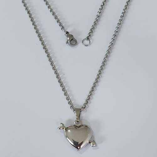 GARGANTILHA EM AÇO INOXIDÁVEL - CORRENTE DE 45CM (BCL33) PINGENTE CORAÇÃO DUPLO COM FLECHA 20MM AÇO2316