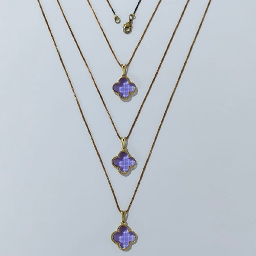 GARGANTILHA NO BRUTO PRONTA PARA O BANHO - KIT COM 3 CORRENTES VENEZIANAS 45CM E PINGENTES TIPO VAN CLEEF VIDRO LILÁS 15MM - PESO TOTAL 9GR - BRU24308