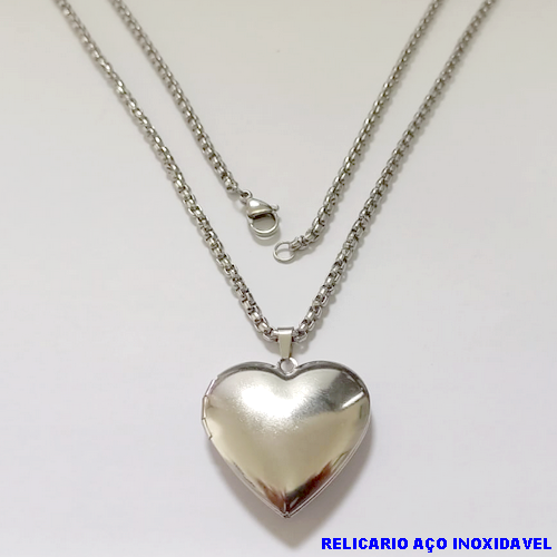 GARGANTILHA EM AÇO INOXIDAVEL (CX153)COM *(CORRENTE CORDÃO INDIANO DE 60CM)* E FECHO LAGOSTA-(RELICARIO TAMANHO 3CM )- AÇO0304