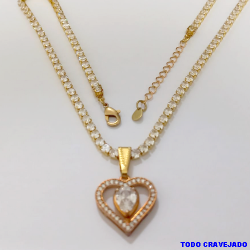 SHOCKER NO BRUTO PRONTO PARA O BANHO (COM PINGENTE TODO CRAVEJADO )(CX154)- TAMANHO 40CM+EXTENSOR - LARGURA 3MM - 60% LATÃO+ZIRCONIA - BRU24370