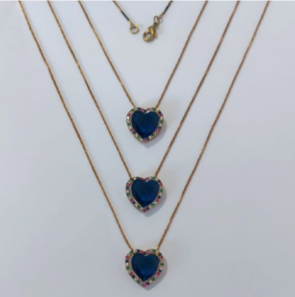 GARGANTILHA NO BRUTO PRONTA PARA O BANHO - KIT COM 3 GARGANTILHAS COM CORRENTES VENEZIANA 45CM E PINGENTES COM BASES EM ALTA FUSÃO CORAÇÃO CRAVEJADAS COM MICROS ZIRCÔNIAS COLORIDA E PEDRA EM ZIRCÔNIA 10MM - PESO TOTAL 3,4GR/UNIDADE -