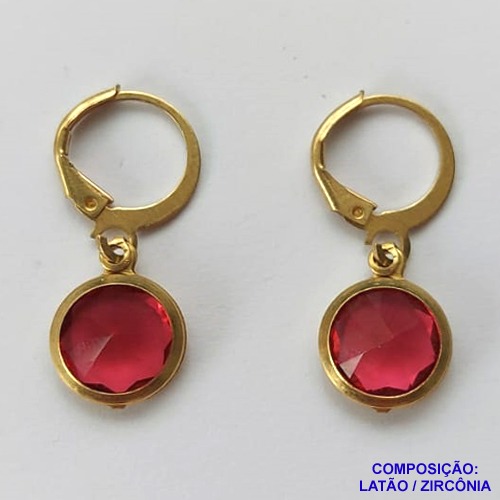 BRINCO NO BRUTO PRONTO BANHO - BRINCO COM PINGENTE EM ZIRCÔNIA VERMELHA 10MM - ARGOLINHA DE PRESSÃO (TRANQUETA) - PESO TOTAL 2.2GR - BRU10596