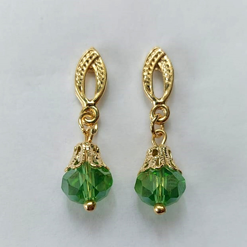 BRINCO FOLHEADO A OURO - BANHADO COM 5 MILÉSIMOS + VERNIZ DIAMOND - BRINCO DE PINO BASE OVAL E CRISTAL AUSTRÍACO 8MM - OURO460