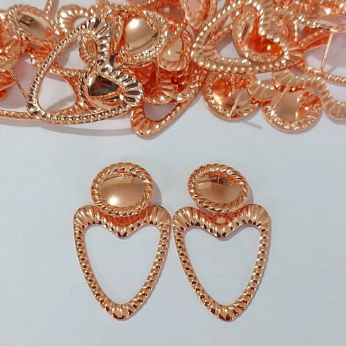 BRINCO NO BRUTO PRONTO BANHO - BRINCO DE PINO BASE REDONDA E CORAÇÃO VAZADO - TAMANHO 38MM - PESO TOTAL 5GR - BRU23969