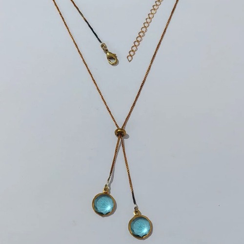 GARGANTILHA NO BRUTO PRONTA PARA O BANHO - GARGANTILHA GRAVATINHA (AJUSTÁVEL) 45CM + EXTENSOR COM PINGENTES DE ZIRCÔNIAS AZUÍS 10MM - PESO TOTAL 4,2GR - BRU24156