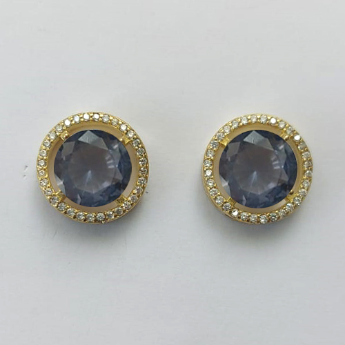 BRINCO NO BRUTO PRONTO PARA O BANHO - BRINCO DE PINO COM BASE EM ALTA FUSÃO REDONDA CRAVEJADA COM MICROS ZIRCÔNIAS CRISTAIS E PEDRA EM ZIRCÔNIA LILÁS 10MM - PESO TOTAL 5,3GR BRU15892