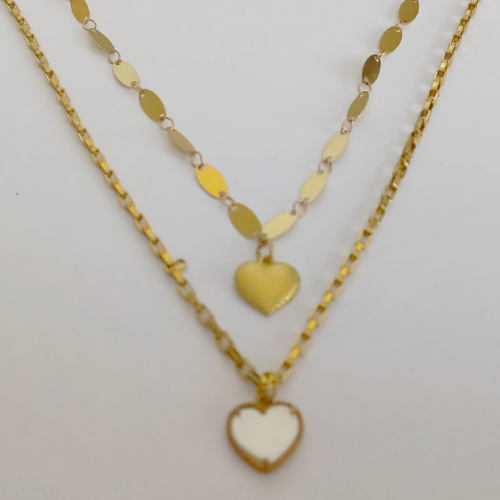 GARGANTILHA NO BRUTO PRONTO PARA O BANHO(corrente dupla) CORRENTE TIJOLINHO 55CM/CORRENTE DE CHAPINHA 50CM) PESO TOTAL 10GR ( CORAÇÃO EM LATÃO E CORAÇÃO DE RESINA DE 10MM) COM FECHO LAGOSTA + EXTENSOR- BRU12319