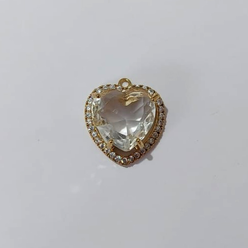 PINGENTE NO BRUTO PRONTO PARA O BANHO - PINGENTE COM BASE CORAÇÃO CRAVEJADO EM MICRO ZIRCÔNIAS CRISTAIS E PEDRA EM ZIRCÔNIA CRISTAL 15X15MM - PESO TOTAL 4,2GR - COMPOSIÇÃO: LATÃO / ZIRCÔNIA - BRU24196