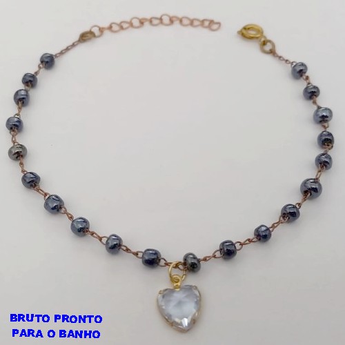 PULSEIRA NO BRUTO PRONTO PARA O BANHO(CX167)TODA EM CONTAS DE PORCELANA NEGRA E UM CORAÇÃO EM ZIRCONIA(TAMANHO 18CM)PESO 2.6GR - BRU24926