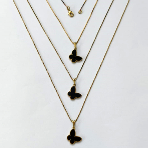 GARGANTILHA NO BRUTO PRONTA PARA O BANHO - KIT COM 3 CORRENTES VENEZIANAS 45CM E PINGENTES BORBOLETAS EM RESINA PRETA 14MM - PESO TOTAL 5,8GR - BRU16318