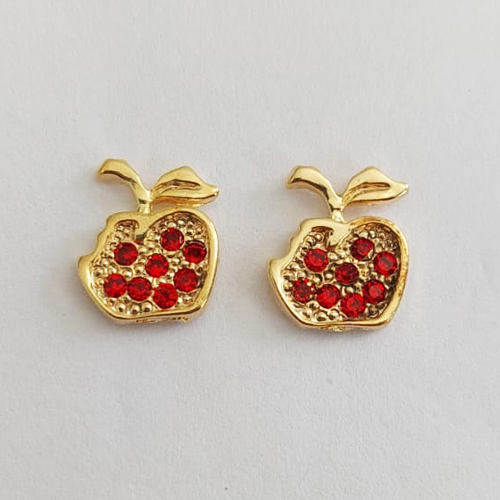 BRINCO FOLHEADO A OURO - BANHADO COM 5 MILÉSIMOS + VERNIZ DIAMOND - BRINCO DE PINO MAÇA CRAVEJADA EM MICRO ZIRCÔNIAS ROSA 13MM - OURO1022