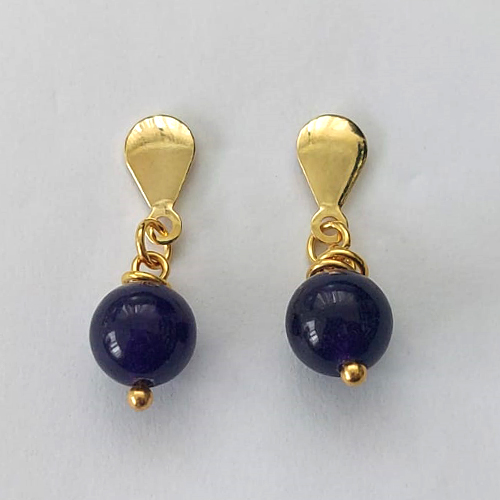 BRINCO FOLHEADO A OURO - BANHADO COM 5 MILÉSIMOS + VERNIZ DIAMOND - BRINCO DE PINO BASE GOTA E PINGENTE PEDRA NATURAL ÁGATA 7MM - OURO608