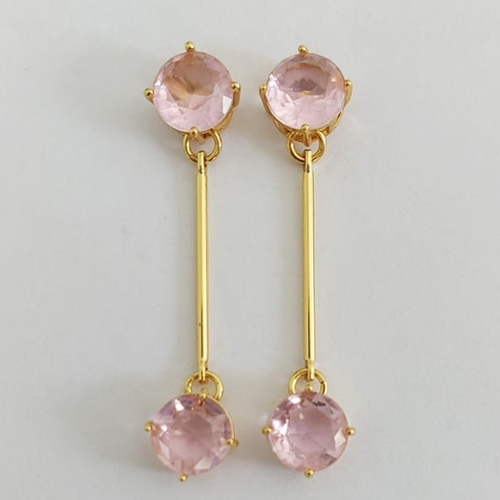 BRINCO FOLHEADO A OURO CINCO MILÉSSIMOS+VERNIZ DIAMOND - BRINCO PINO COM ZIRCÔNIA ROSA 8MM - OURO967