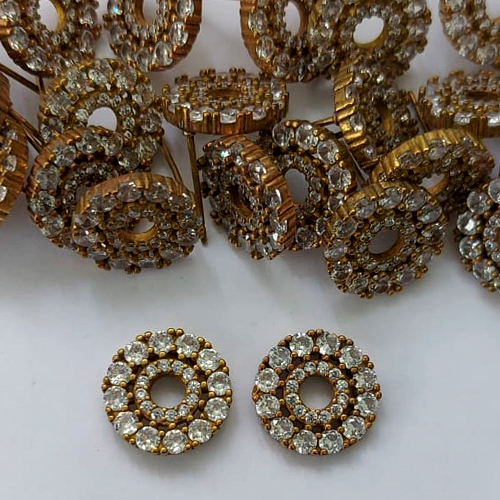 BRINCO NO BRUTO PRONTO PARA O BANHO - BRINCO DE PINO REDONDO VAZADO CRAVEJADO EM MICROS ZIRCÔNIAS 13MM - PESO: 2,8GR - COMPOSIÇÃO: LATÃO / ZIRCÔNIA - BRU16028