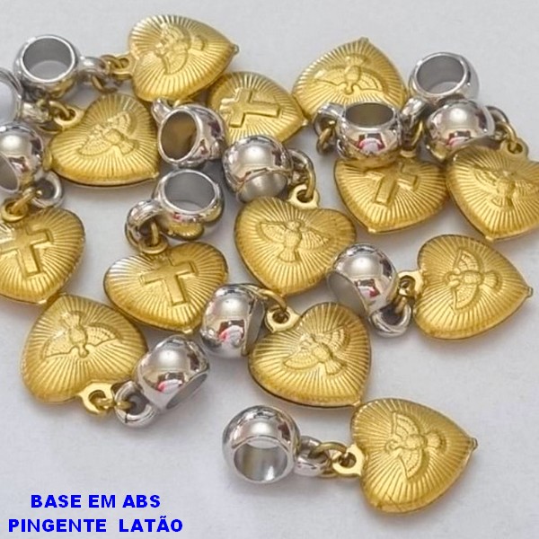 ACESSÓRIO NO BRUTO PRONTO PARA O BANHO(E2548) PINGENTE CORAÇÃO CRUZ DE UMA LADO E ESPÍRITO SANTO DE OUTRO 13MM - BERLOQUE PARA PULSEIRA SIMILAR A PANDORA(PEÇA VENDIDA POR UNIDADE) PENDENTE ABS - PESO 1,0GR - BRU000601