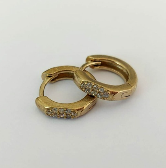 BRINCO NO BRUTO PRONTO PARA O BANHO (BRINCO ARGOLINHA DE PRESSÃO CRAVEJADO EM MICRO ZIRCONIAS (149)- COMPOSIÇÃO: LATÃO 100% - TAMANHO 10MM - (VENDIDO POR PAR) PESO TOTAL 1.3GR - BRU23942