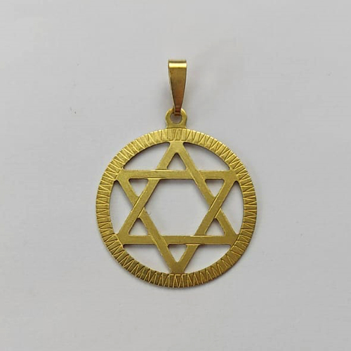 PINGENTE NO BRUTO PRONTO PARA O BANHO - (E2233) PINGENTE REDONDO ESTRELA DE DAVI 27MM - PESO: 1,4GR - COMPOSIÇÃO: 100% LATÃO - BRU15793