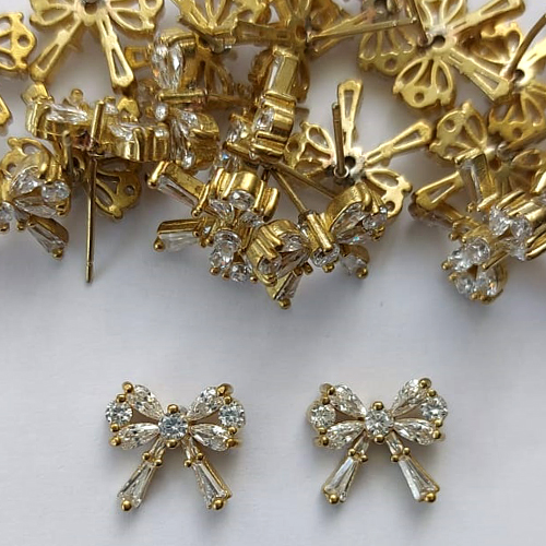BRINCO NO BRUTO PRONTO PARA O BANHO - BRINCO DE PINO LAÇO CRAVEJADO EM MICROS ZIRCÔNIAS 12MM - PESO: 2GR - COMPOSIÇÃO: LATÃO / ZIRCÔNIA - BRU15899