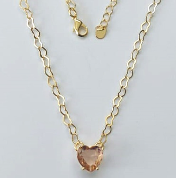 SHOCKER FOLHEADO A OURO 5 MILÉSIMOS + VERNIZ DIAMOND - CORRENTE DE CORAÇÃO 40CM + EXTENSOR E FECHO LAGOSTA - PINGENTE ZIRCÔNIA FORMATO CORAÇÃO 10MM - OURO889