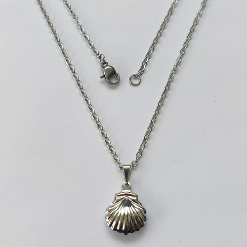 GARGANTILHA EM AÇO INOXIDÁVEL - (ACO03C) GARGANTILHA COM CORRENTE 50CM E PINGENTE CONCHA DUPLA 18MM - COMPOSIÇÃO: AÇO INOXIDÁVEL - AÇO2189