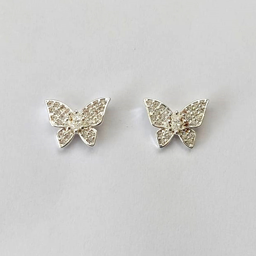 BRINCO FOLHEADO A PRATA COM 50 MILÉSIMOS + VERNIZ DIAMOND - BRINCO DE PINO BORBOLETA COM ZIRCÔNIAS 8MM - PRA619