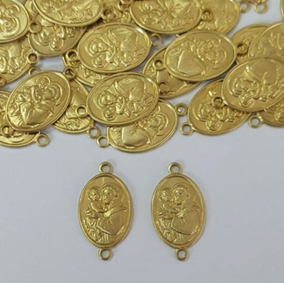 ACESSORIO NO BRUTO PRONTO PARA O BANHO(CX149)(5935) VENDIDO POR UNIDADE/ Oval 12,8mm Santo Antonio C/ 2 argolinha / PESO 0,7GR - BRU3902