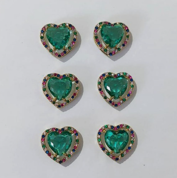 BRINCO NO BRUTO PRONTO PARA O BANHO - KIT COM 3 BRINCOS DE PINO COM BASE EM ALTA FUSÃO CRAVEJADA EM MICRO ZIRCONIA COLORIDA DE 14MM E PEDRA DE ZIRCONIAS DE10X10MMMM - PESO DO PAR 3.8GR - BRU3829