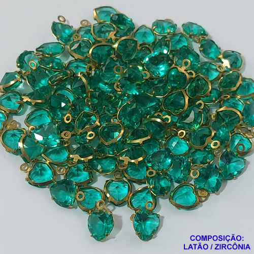PINGENTE NO BRUTO PRONTO PARA O BANHO - PINGENTE EM ZIRCONIA VERDE FORMATO CORAÇÃO - COMPOSIÇÃO: LATÃO / ZIRCÔNIA - TAMANHO 8MM - (VENDIDO POR UNIDADE) PESO TOTAL 0,4GR - BRU0001517