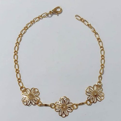 PULSEIRA FOLHEADO A OURO + VERNIZ CATAFORÉTICO - PULSEIRA 18CM COM FLORES VAZADAS - OURO1192