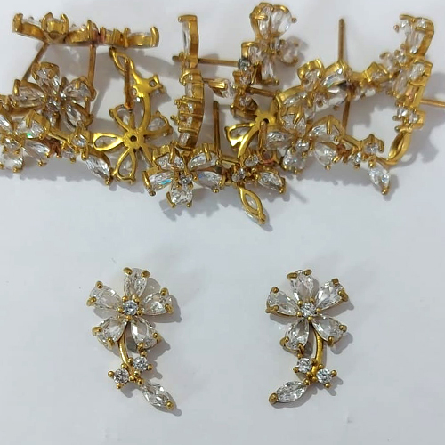 BRINCO NO BRUTO PRONTO PARA O BANHO - BRINCO DE PINO FLOR CRAVEJADA EM ZIRCÔNIAS - TAMANHO 19MM - COMPOSIÇÃO: LATÃO / ZIRCÔNIA - PESO 2,2GR - BRU24072