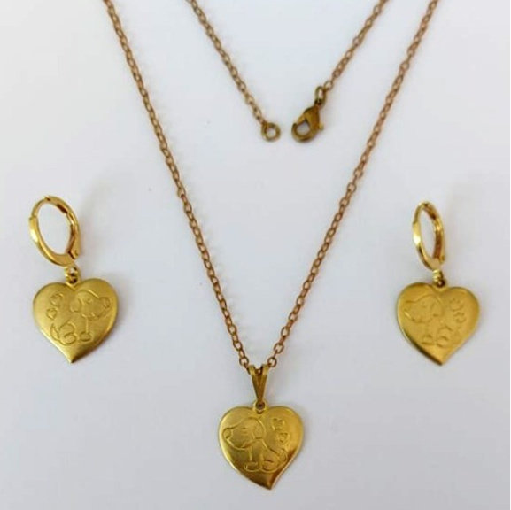 CONJUNTO NO BRUTO PRONTO PARA O BANHO - (4253) LOVE MEU DOG 15X14MM / CONJUNTO COM CORRENTE CADEADO 45CM COM BRINCOS ARGOLINHA DE PRESSÃO - PESO: 5.2GR - COMPOSIÇÃO: 100% LATÃO - BRU0003441