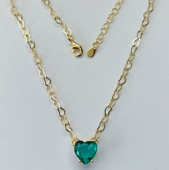 SHOCKER FOLHEADO A OURO 5 MILÉSIMOS + VERNIZ DIAMOND - CORRENTE DE CORAÇÃO 40CM + EXTENSOR E FECHO LAGOSTA - PINGENTE ZIRCÔNIA FORMATO CORAÇÃO 10MM - OURO896