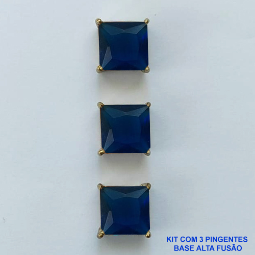 PINGENTE NO BRUTO PRONTO PARA O BANHO - KIT COM 3 PINGENTES COM BASES EM ALTA FUSÃO COM ZIRCÔNIAS QUADRADAS AZUIS ESCURAS 10X10MM - PESO TOTAL 6,8GR - BRU15989
