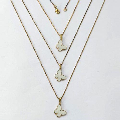 GARGANTILHA NO BRUTO PRONTA PARA O BANHO - KIT COM 3 CORRENTES VENEZIANAS 45CM E PINGENTES BORBOLETAS EM RESINA MADRE PÉROLA 14MM - PESO TOTAL 5,8GR - BRU16319