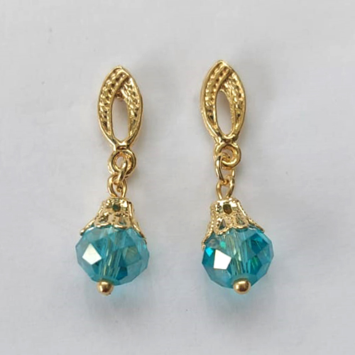 BRINCO FOLHEADO A OURO - BANHADO COM 5 MILÉSIMOS + VERNIZ DIAMOND - BRINCO DE PINO BASE OVAL E CRISTAL AUSTRÍACO 8MM - OURO455
