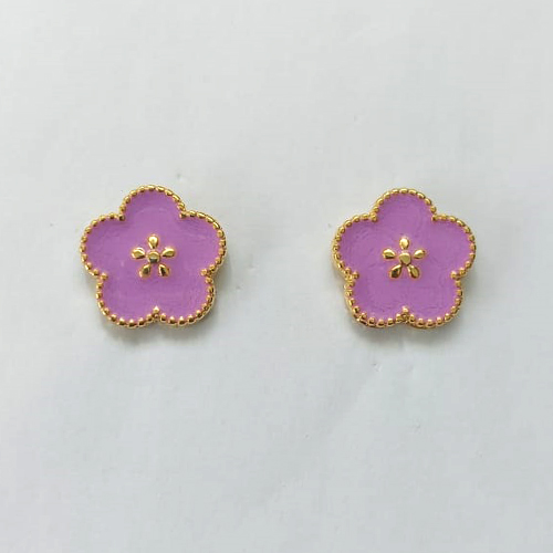 BRINCO FOLHEADO A OURO - BANHADO COM 5 MILÉSIMOS + VERNIZ DIAMOND - (CRIS) BRINCO DE PINO FLOR ESMALTADA LILÁS 15MM - OURO482