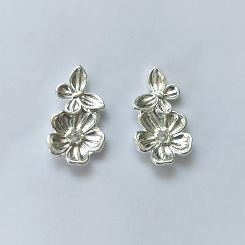 BRINCO FOLHEADO A PRATA COM 50 MILÉSIMOS + VERNIZ DIAMOND - (CRIS) BRINCO DE PINO FLOR E BORBOLETA 10X18MM - PRA608